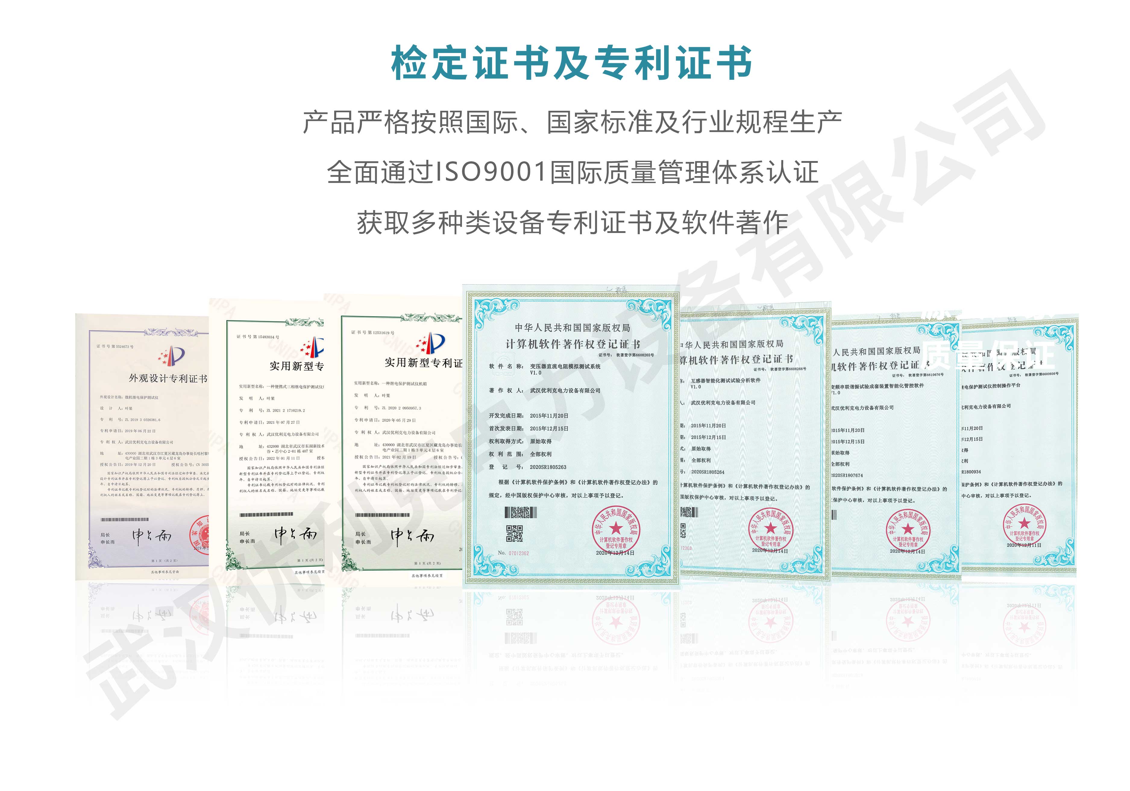 企業(yè)產(chǎn)品嚴格按照國際、國家標準及行業(yè)規(guī)程生產(chǎn),通過國家、各省級、市級電力研究所、計量中心及電力權威部門的檢測,全面通過ISO9001國際質(zhì)量管理體系認證、中華人民共和國制造計量器具許可證、GB/T19001-2016質(zhì)量管理體系要求、GB/T24001-2016環(huán)境管理體系要求、GB/T45001-2020職業(yè)健康安全管理體系要求。