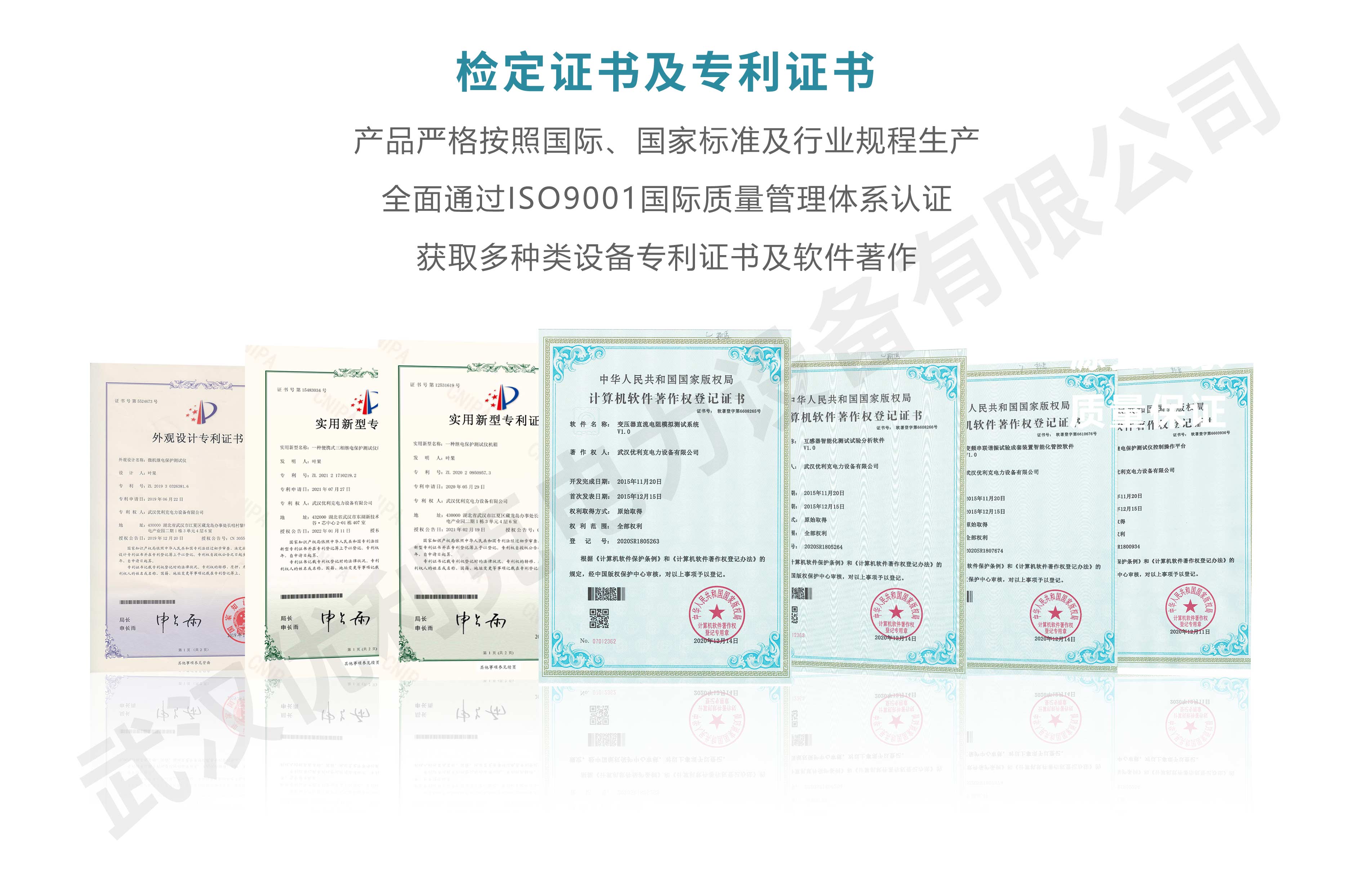 企業產品嚴格按照國際、國家標準及行業規程生產,通過國家、各省級、市級電力研究所、計量中心及電力權威部門的檢測,全面通過ISO9001國際質量管理體系認證、中華人民共和國制造計量器具許可證、GB/T19001-2016質量管理體系要求、GB/T24001-2016環境管理體系要求、GB/T45001-2020職業健康安全管理體系要求。