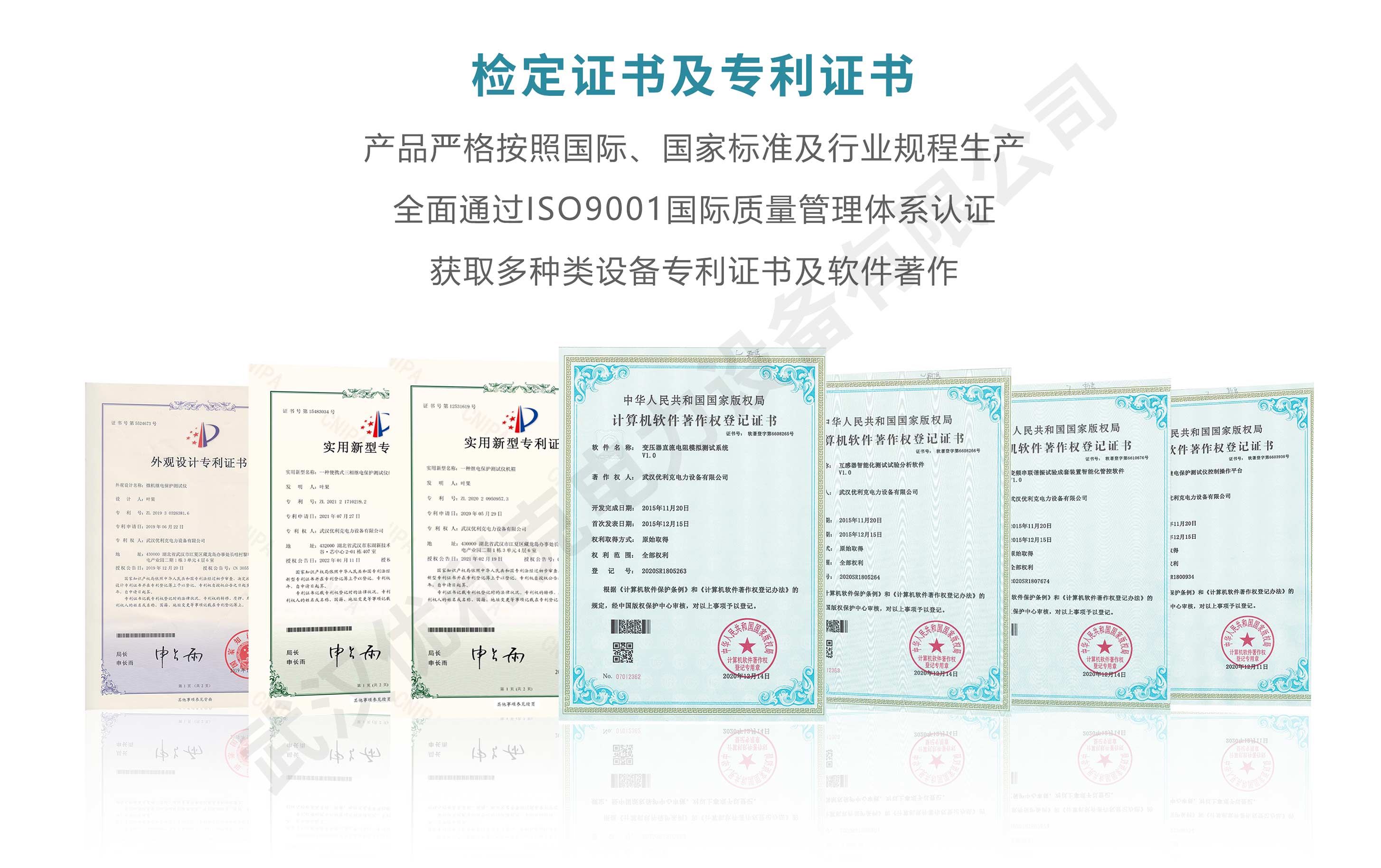 企業產品嚴格按照國際、國家標準及行業規程生產,通過國家、各省級、市級電力研究所、計量中心及電力權威部門的檢測,全面通過ISO9001國際質量管理體系認證、中華人民共和國制造計量器具許可證、GB/T19001-2016質量管理體系要求、GB/T24001-2016環境管理體系要求、GB/T45001-2020職業健康安全管理體系要求。