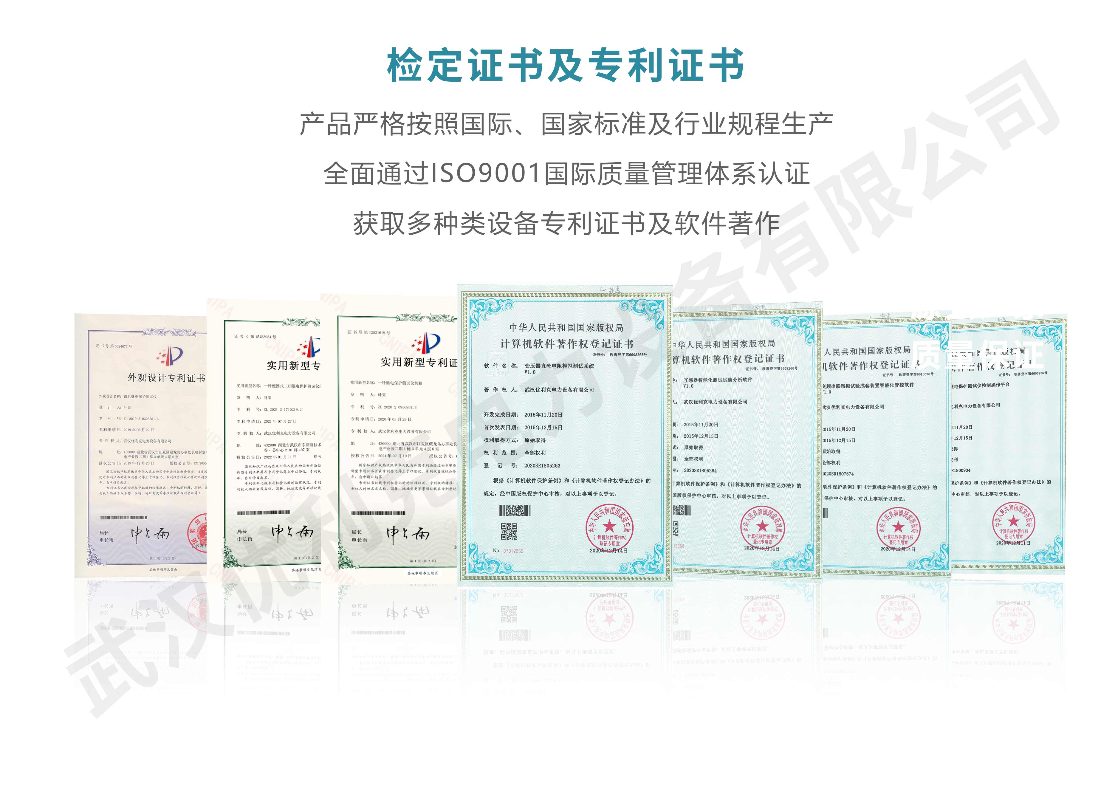 企業產品嚴格按照國際、國家標準及行業規程生產,通過國家、各省級、市級電力研究所、計量中心及電力權威部門的檢測,全面通過ISO9001國際質量管理體系認證、中華人民共和國制造計量器具許可證、GB/T19001-2016質量管理體系要求、GB/T24001-2016環境管理體系要求、GB/T45001-2020職業健康安全管理體系要求。