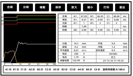儀的打印功能將測試結果打印出來,或利用數據接口將數據導出至計算機進行更深入的分析。例如,如果三相的分合閘時間差異較